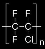Polychlorotrifluoroethene (PCTFE or PTFCE) is a thermoplastic chlorofluoropolymerwith the molecular formula (CF2CClF)n, where n is the number of monomer units in thepolymer molecule. It is similar topolytetrafluoroethene (PTFE), except that it is ahomopolymer of the monomerchlorotrifluoroethylene (CTFE) instead of tetrafluoroethene. It has the lowest water vapor transmission rate of any plastic. PCTFE finds majority of its application due to two main properties; water repulsion and chemical stability. PCTFE films are used as a protective layer against moisture. These include, Moisture barrier in pharmaceutical blister packaging. Water vapor barrier for protecting phosphor coatings in electroluminescent lamps. The phosphor chemicals are sensitive to moisture.